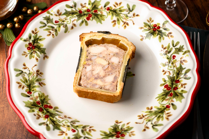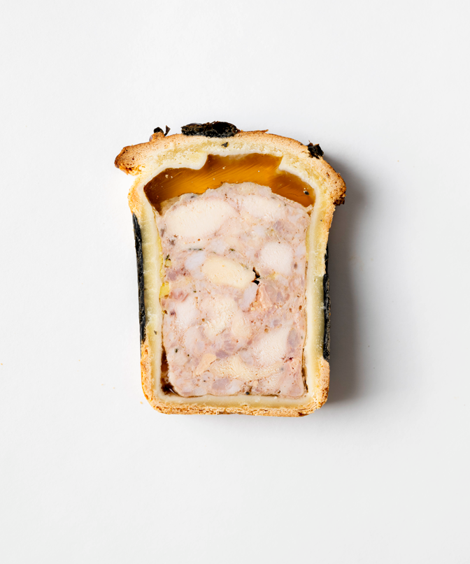 Il s’agit d’un subtil équilibre entre foie gras de canard et des belles volailles liés par du cochon dans une pâte brisée.